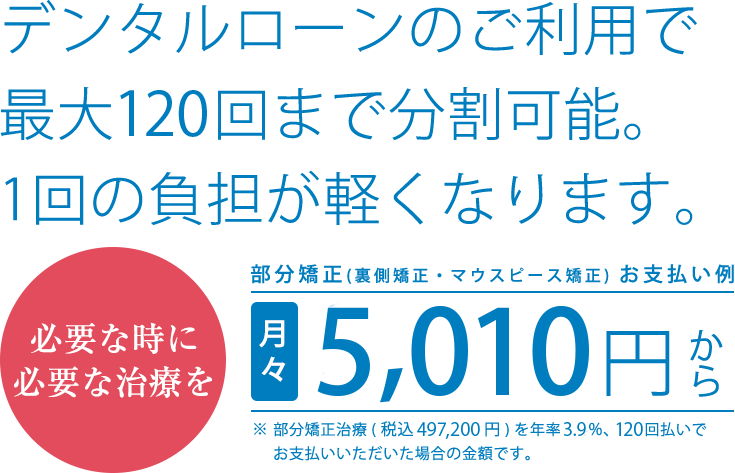 患者さまの気持ちを考えるなら、矯正治療を受けたいと思った時に、治療を始められる。それが理想です。その点を叶えるため、東京八重洲キュア矯正歯科はデンタルローンのご用意をしております。